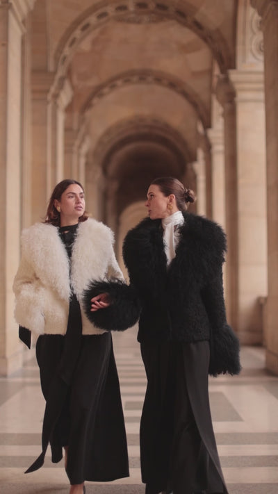 Combining the luxurious textures of mongolian fur & bouclé tweed, our Chambord is as practical as she is chic.