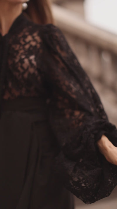 Our Lace Marquise & Baroque Blouses layer beautifully under our Chambord coat.