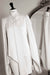 A statement pearl button delicately secures the blouse at cuffs —designed to be worn closed for a sculptural silhouette, or unbuttoned & undone as enormous statement ruffles. -