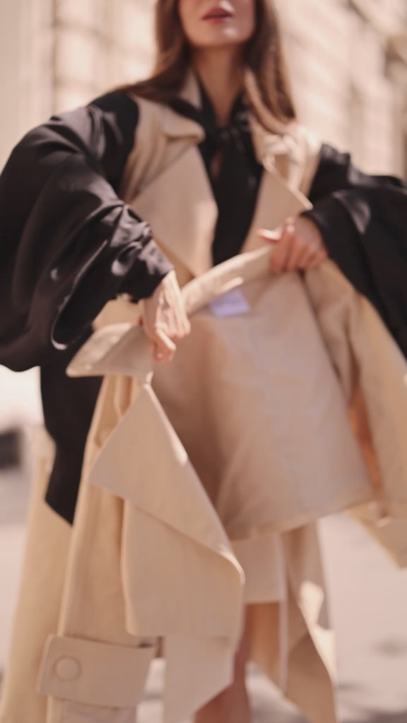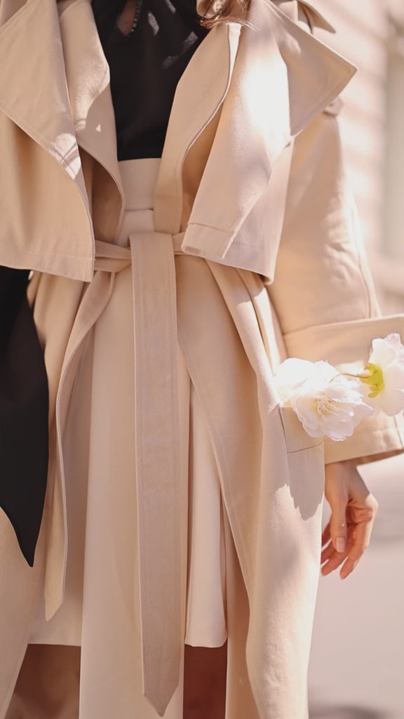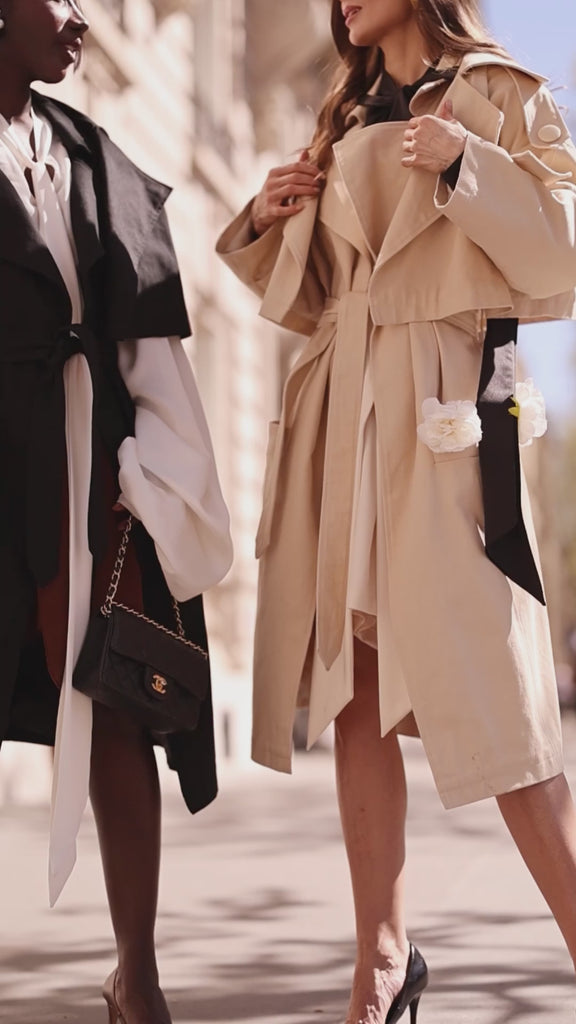 If you own one of our previous French Trench styles, please note that following client feedback we’ve made two updates: the sleeve length has been shortened by 5 cm, and the detachable waist belt is is now double in length for added versatility. These changes also ensure our one-size-fits-all design.